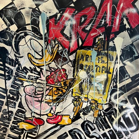 Originalt lakeret værk af Thierry Auger, fransk popkunstner, maling med blandet teknik, unikt stykke filmhistorie kombineret med popkunstkultur.