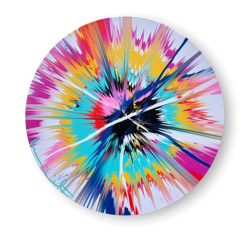Damien Hirst, omskrevet som H12 - 4 - 799 Beautiful, The Greatest Possible, Simple Yet Clear, Great And Final Supernova Painting, er et giclée-tryk fra 2023 på poly-cotton lærred monteret i en birketræ-ramme, håndsigneret foran, i fremragende stand, 23 × 23 cm, Origineel-udgaven fra Storbritannien. Klik på den blå "gå til varen" knap, for at købe eller byde på denne vare. Den samlede pris vil blive vist inden du afgiver dit bud.