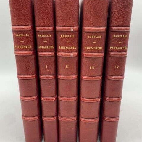 Udateret tryk af den berømte illustrerede udgave af Rabelais' værk af Gustave Doré. Originaludgaven med de samme illustrationer (portræt og 725 træsnit) blev udgivet på samme adresse i 1873.