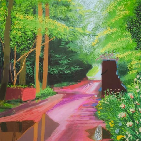 Anerkendt som en produktiv og nyskabende kunstner har Hockney dybt præget popkunst og samtidskunst med sine udtryksfulde portrætter, strålende landskaber og dristige udforskninger af nye medier. Denne panoramiske tryk opsummerer hans fortsatte