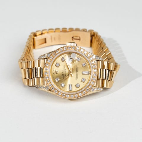 Det er et af de fineste kvinders ure, siden 1957. De små 26 mm dimensioner gør denne model til et manufakturjuveler Rolex Jubilee armbånd i overensstemmelse med 18 karat gult guld og stål. Modellen er en kompliment af sofistikeret elegance, signeret Rolex.