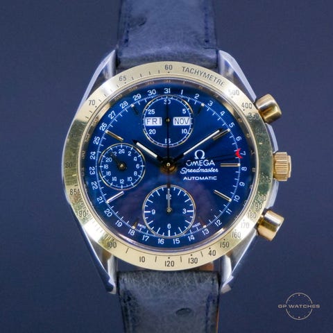 Smukt Omega Speedmaster stål/guld begrænset udgave armbåndsur fra ca. 1988.
