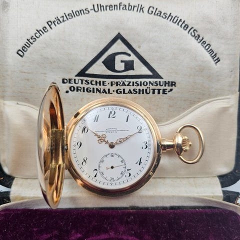 En unik Deutsche præcisions-urefabrik Lashütte (SA) urglasere Werke tysk urmager 14-karat guld 'Original Glashütte' kvalitet 1A lommeur fra 1926.