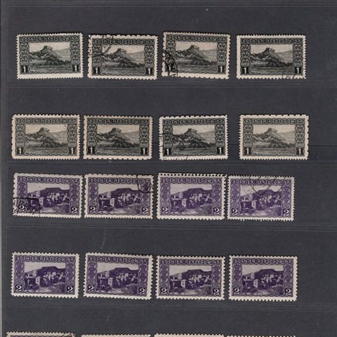 Oprindelse: Østrig-Ungarn - Bosnien-Hercegovina; Titel: Bosnien-Hercegovina 1906, nr. 29-42, Lot med MNH – firkanter af fire i forskellige perforationer; Tilstand: MNH. Klik på den blå "gå til varen" knap, for at købe eller byde på denne vare. Den samlede pris vil blive vist inden du afgiver dit bud.