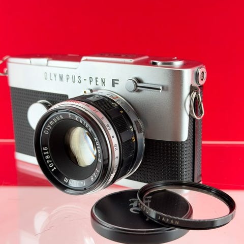 Olympus-Pen S halvramme 35 mm filmkamera med fast D.Zuiko 30 mm f/2,8-objektiv, Serienummer 349073, fra 1960’erne, fysisk tilstand god og testet og funktionsdygtig, inklusive originalt Olympus Pen-koffert. Klik på den blå "gå til varen" knap, for at købe eller byde på denne vare. Den samlede pris vil blive vist inden du afgiver dit bud.