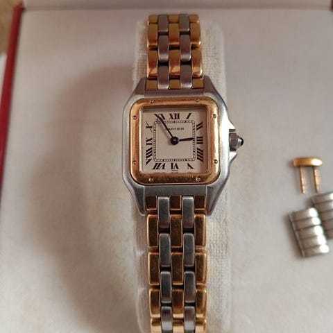 Cartier electroplata mekanisk ur med en 23 mm elektroplatelet kast, læderrem og romerske tal på skiven, fra 1968. Klik på den blå "gå til varen" knap, for at købe eller byde på denne vare. Den samlede pris vil blive vist inden du afgiver dit bud.