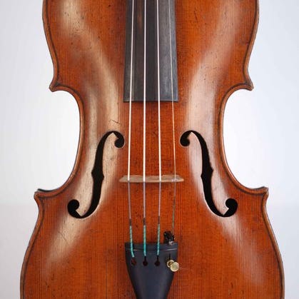 Det er en fuldstørrelsesviolin (helt længde: 592 mm, krop: 362 mm, øvre bouts: 163 mm; midter bouts: 113 mm; nedre bouts: 202 mm) med to mærkater indvendigt: