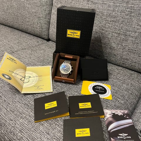 Breitling Montbrillant reference A41330 automatisk herreur i rustfrit stål med champagne-dial, kasse 39 mm, lænke af stål, dobbelt-vejs bezel, automatisk bevægelse, fra perioden 2000–2010, i god stand med synlige brugsspor. Klik på den blå "gå til varen" knap, for at købe eller byde på denne vare. Den samlede pris vil blive vist inden du afgiver dit bud.