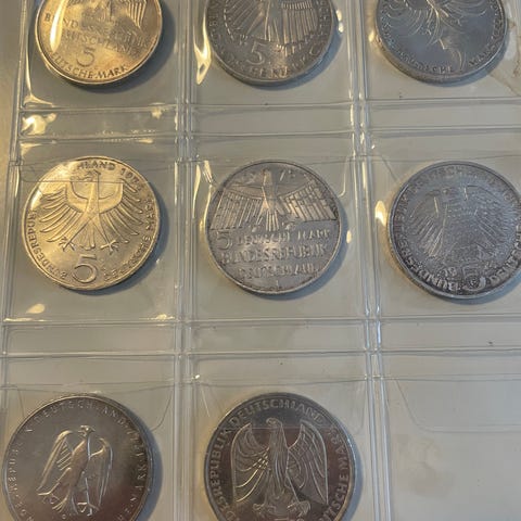 Tyskland. Silber Adler 73x 5 Mark 1951-1974 including 1958-J (RARE) / complet...