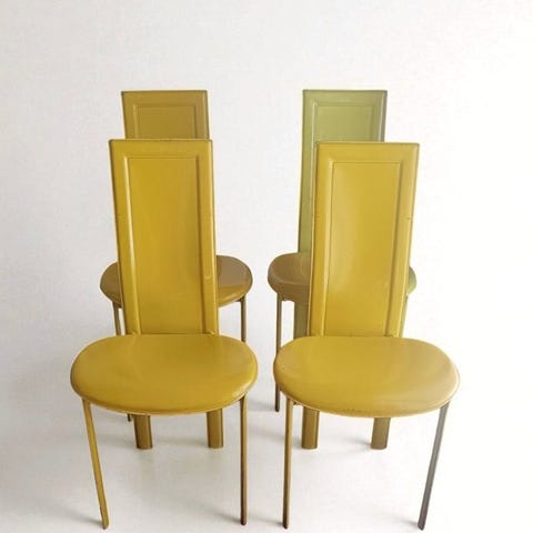 Et kendetegn er den robuste, buede krombelagte stålrør, typisk for Bauhaus og 1970'ernes Art Nouveau-møbler.