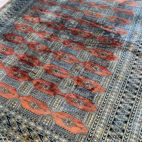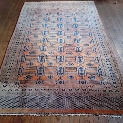 For at komme ind i vores lager, er det blevet renset på et vaskeri, der er specialiseret i håndknyttede tæpper, og er derefter ikke længere brugt.