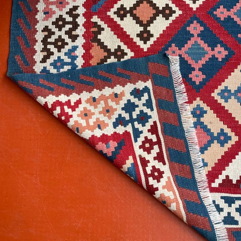 For at komme ind i vores lager, er det blevet renset på et vaskeri, der er specialiseret i håndknyttede tæpper, og er derefter ikke længere brugt.