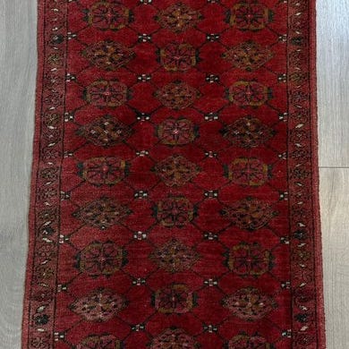 Håndknyttet orientalskedekorationsmåtte fra Tyrkiet, vintage-model, uld på bomuld, 170 × 120 cm, rød, Shirvan/kaukasisk stil, slutningen af det 20. århundrede, generelt god stand med tegn på alder og slid. Klik på den blå "gå til varen" knap, for at købe eller byde på denne vare. Den samlede pris vil blive vist inden du afgiver dit bud.