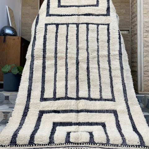 Berber-tæppe håndvævet i uld fra Pakistan, ca. 239 × 165 cm, naturhvid og sort, i meget god stand. Klik på den blå "gå til varen" knap, for at købe eller byde på denne vare. Den samlede pris vil blive vist inden du afgiver dit bud.