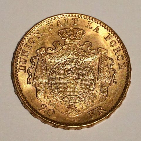 Guldbelønnet verdenmønt fra Tyskland (Prøjssen), 1914-A, præget under Wilhelm II; vægt 7,965 g, guldindhold 0,900, diameter 22,5 mm; ikke certificeret. Klik på den blå "gå til varen" knap, for at købe eller byde på denne vare. Den samlede pris vil blive vist inden du afgiver dit bud.
