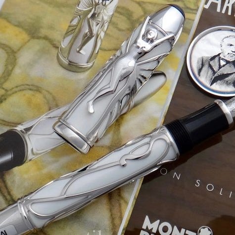 Ateliers Privés-linjen repræsenterer den absolut højeste klasse af Montblanc-penne—smukt håndværk, lavet af ædle metaller og ædelstene, og derfor meget dyr og eksklusiv. 228 diamanter pr. pen.