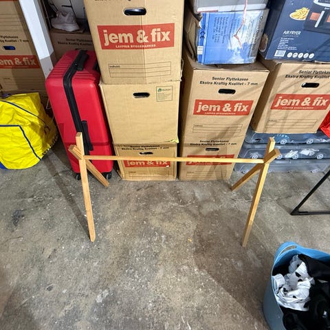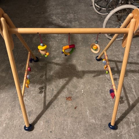 Rigtig fint træstativ til at hænge forskellige ting op til at underholde baby med.