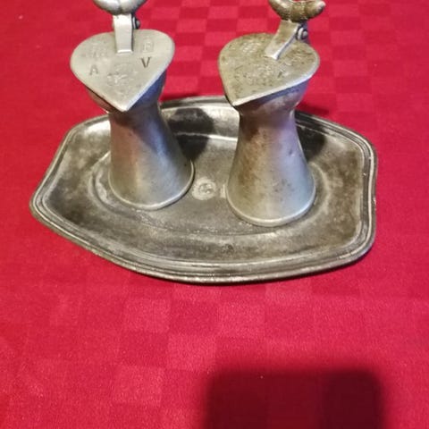 Fine kvalitet senneps- og peberkagetilpasset sæt lavet af Mappin & Webb. Sølvbelagt med blå glasindsats, 3 løvefodede base, sennepsske med Martin Hall & Co, næsten ubrugte genstande i fremragende stand.