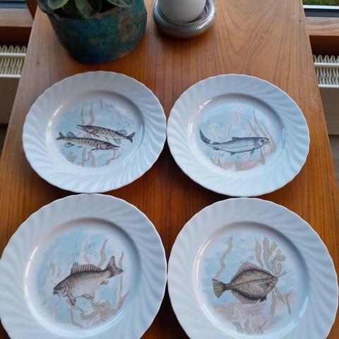 Servicet til servering af fisk produceret i 1980'erne af det anerkendte tyske firma Seltmann Weiden Vohenstrauss.
