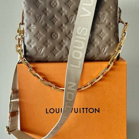 Louis Vuitton Coussin taske i koralrødt læder med to aftagelige stroppes, en gyldent metal kædestropp og en ton-i-ton stofstropp med gyldne detaljer, mål 19 cm høj, 26,5 cm lang og 7,5 cm dyb, Made in France, i god stand og let brugt med små tegn på slid. Klik på den blå "gå til varen" knap, for at købe eller byde på denne vare. Den samlede pris vil blive vist inden du afgiver dit bud.