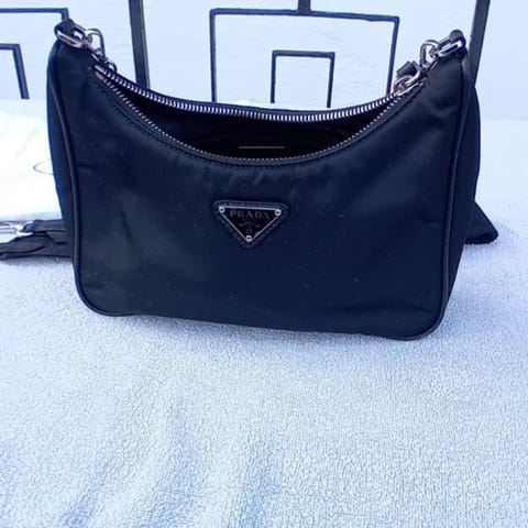 Prada skuldertaske i sort i nylon og saffiano læder, inkluderede tilbehør: skulderstrop, lås, navnplade, garantikort, opbevaringspose og æske, i meget god stand med let slid. Klik på den blå "gå til varen" knap, for at købe eller byde på denne vare. Den samlede pris vil blive vist inden du afgiver dit bud.