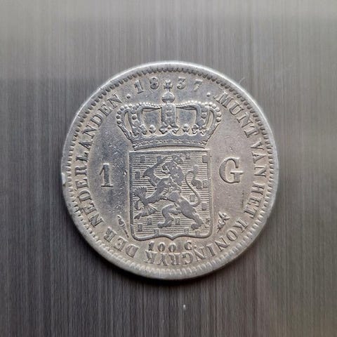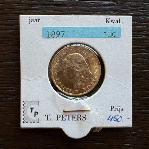 Nederlands guldbes atningmøn 1818 Willem I, vægt 6,73 g, indhold .900, diameter 22,5 mm, i Proof-tilstand. Klik på den blå "gå til varen" knap, for at købe eller byde på denne vare. Den samlede pris vil blive vist inden du afgiver dit bud.