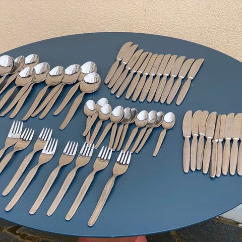Bestik er lavet af stål af god kvalitet med en blank finish. De har brugsspor og mikro ridser, der er i