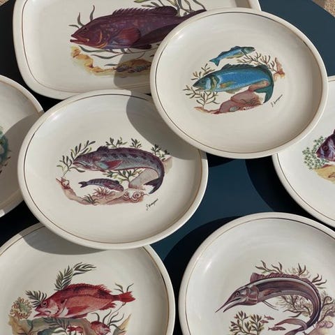 4 frugt tallerkener, 22 cm, stor, centrum Lancelot.