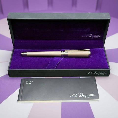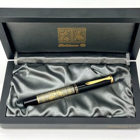 Denne eksklusive Sailor 1911 Maki-e præsenterer sig i en fremragende stand, der fuldt ud bevarer sin håndværksmæssige elegance og den karakteristiske forfinelse fra Sailor-huset. Kroppen, fremstillet af sort lakkeret resin, udviser en dyb, blank og ensartet finish, hvorpå der fremhæves en ægte Maki-e-dekoration udført med stor præcision: blomster og blade i guld-, rød- og kobbernuancer, der bevarer deres originale intensitet og tiltrækningskraft.