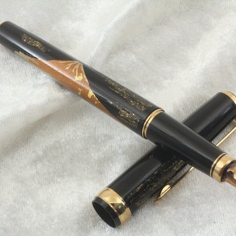 Sailor 1911 Maki-e blomster-feinpen, fremstillet i Japan, krop af sort lakeret resin, 14K guld nib og autentisk Maki-e dekoration i guld, rødt og kobberfarver, længde 140 mm og diameter 13,2 mm, i god brugt stand og i funktionsdygtig. Klik på den blå "gå til varen" knap, for at købe eller byde på denne vare. Den samlede pris vil blive vist inden du afgiver dit bud.