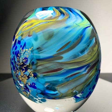 Maxence Parot - Vase - Skulptur unikke farver og guld 38cm - Glas, Krystal