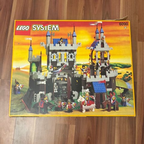 Lego Vintage 6090 Royal Knight's Castle sæt fra 1995, ubrugt i forseglet æske, komplet med 842 plastklodser og 8 minifigurer, Serienummer 6090, oprindelse Danmark. Klik på den blå "gå til varen" knap, for at købe eller byde på denne vare. Den samlede pris vil blive vist inden du afgiver dit bud.
