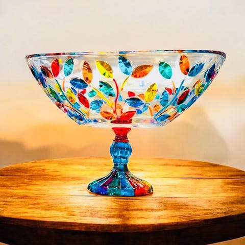 Musikinstrument udført med hånddekoreret glas med farvede emaljer i overensstemmelse med Murano-dekorerernes teknik.