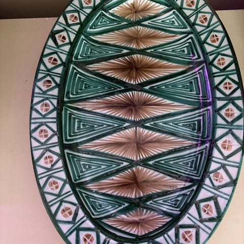Robert Picault keramik salatskål fra Vallauris, Frankrig, dateret 1940–1950, i fremragende stand med kun mindre tegn på slitage; mål: 26 cm bred, 30 cm dyb og 8,5 cm høj. Klik på den blå "gå til varen" knap, for at købe eller byde på denne vare. Den samlede pris vil blive vist inden du afgiver dit bud.