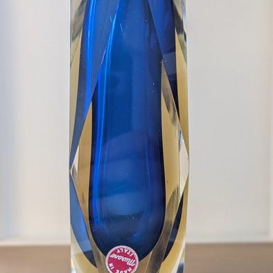 Det drejer sig om et Sommerso i en glasgeode-skål af italiensk kunst, lyse kobaltblå.