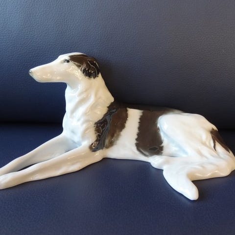 Et hvidt liggende rådyr, med meget fin penselstrøg sparsommelig polykrommalet.