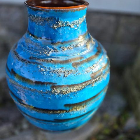 Det har de karakteristiske træk ved Fat Lava-glasur, som var populær i 1960'erne og 1970'erne.
