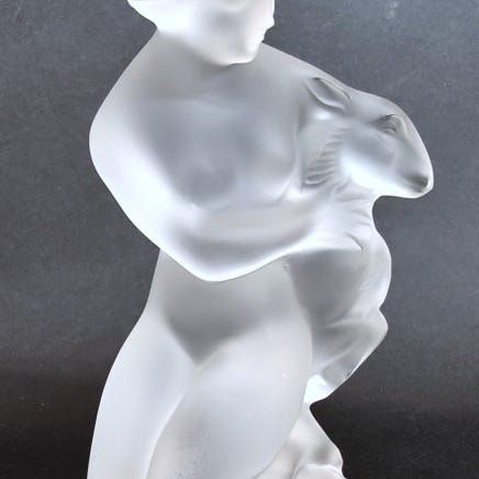 Signaturer indgraveret 'Lalique France' på basen. En stiliseret vædder i mat og transparent krystal, også med detaljer af muskler og horn, i god stand. Et stykke udskåret med finesse, hvilket giver en kunstnerisk og teknisk sofistikeret fremtoning, typisk for Lalique-værker.