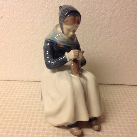 Royal Copenhagen - Figur - Seated Girl Knitting - Porcelæn