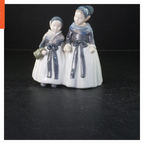 Siddende pige strikkende, håndmalet porcelænsfigur fra Royal Copenhagen Amager-serien, designet af Lotte Benter, i fremragende vintage stand (1969–1973), afbilleder en kvinde i traditionel dansk dragt, siddende og strikkende; mål: 23 cm høj, 15 cm dyb og 13 cm bred. Klik på den blå "gå til varen" knap, for at købe eller byde på denne vare. Den samlede pris vil blive vist inden du afgiver dit bud.