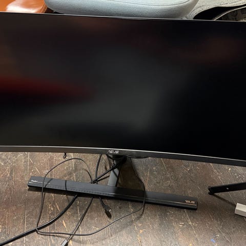 Skærmen er fra 2023 og har kun været brugt til hjemmearbejde et par dage om ugen. Sælges udelukkende fordi jeg har skiftet job og er nødt til at have to mindre skærme i stedet.
