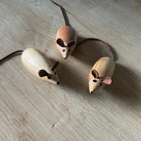 Mus, 3 stk. drejet i mahogni + 1 stk. ost.