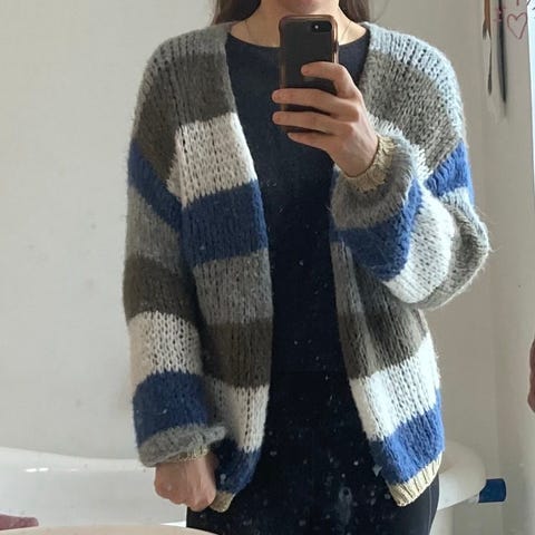 & Other Stories cardigan i størrelse M til kvinder. Fremstillet i uldmateriale med multifarvede striber. Designet som en åben cardigan med lommer.