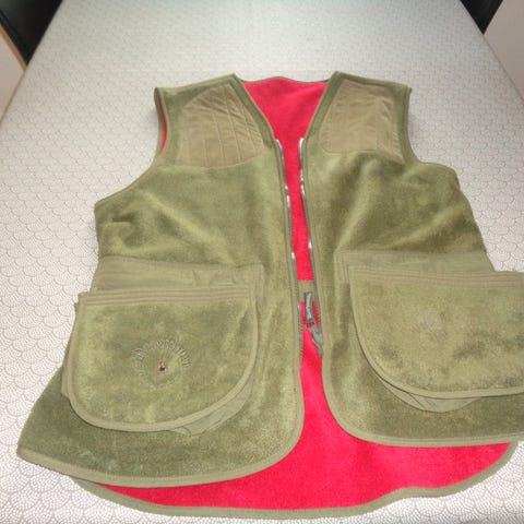 Deerhunter jagtvest i olivengrøn farve. Vesten har flere lommer og er designet til jagtbrug. Materialet er robust og slidstærkt, velegnet til udendørs aktiviteter. Vesten har lynlås foran og justerbare detaljer for bedre pasform. Helt ny og aldrig brugt.