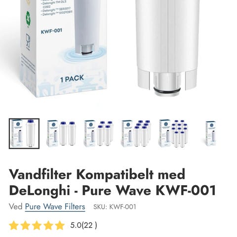 DeLonghi DLS C002 vandfilter til brug i kaffemaskiner. Filteret er designet til at forbedre vandkvaliteten og beskytte maskinen mod kalkaflejringer. Nyt.