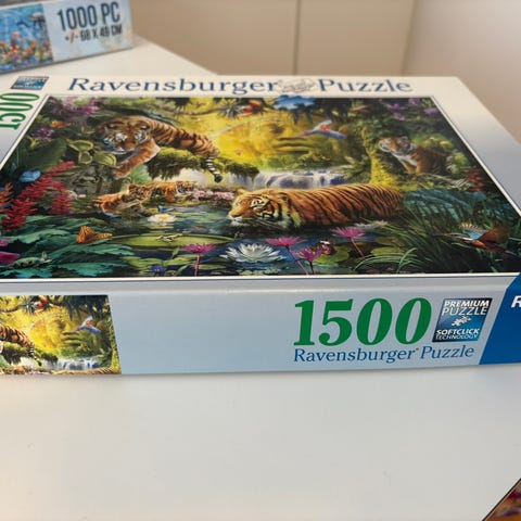 Ravensburger Puzzle 1000 brikker. “brikkerne er lagt en gang, røgfrit hjem”