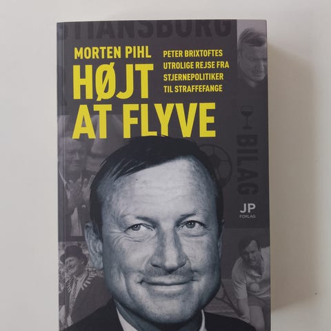 Morten Pihl Højt At Flyve bog med sort og gul forside. Indeholder information om Peter Brixtofte, økonomi og politik.