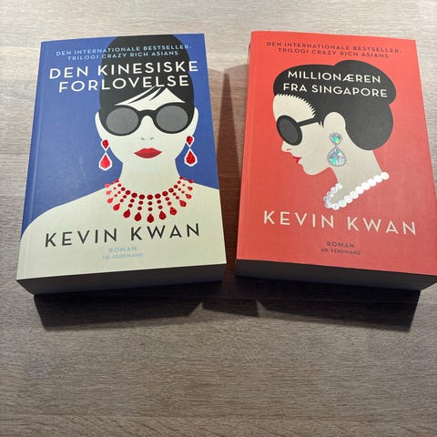 Crazy Rich Asians-trilogien bøger af Kevin Kwan. Læst 1 gang. Samlet pris 120 kr. nypris 389kr