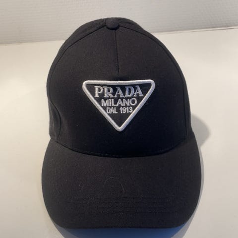 Prada nylon bucket hat i sort farve, størrelse M, designet til mænd. Hatten er fremstillet i nylonmateriale og har Pradas logo på fronten. Købt i Prada butikken i København. Kan afhentes i København NV eller sendes