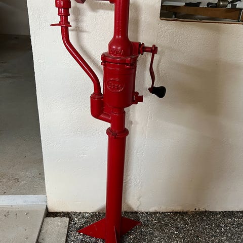 ESSO Motorgasolie Benzinstander med analogt måleapparat. Fremstillet i metal med rustik overflade. Produktet er velegnet til samling eller dekorativ brug.